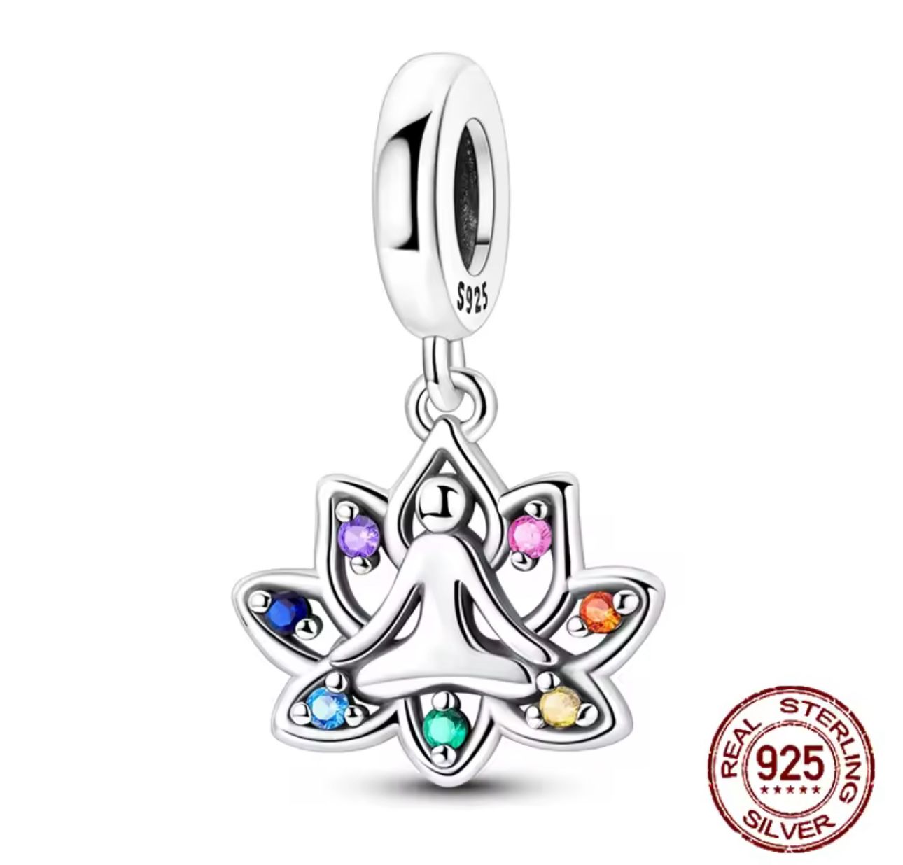 Awaken your energy, restore balance, and carry protection wherever you go with this stunning Chakra Lotus Meditation Charm, beautifully crafted in real 925 sterling silver and designed to fit Pandora-style bracelets and necklaces.